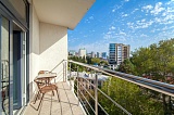 Благодаря большому панорамному окну в квартире очень много света, а наличие открытого балкона с прямым видом не море – приятный бонус!