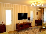 Квартира в самом центре Сочи. Выполнен эксклюзивный дизайнерский ремонт. В отделке использованы только дорогие и высококачественные материалы. Квартира после полной переделки. Полная замена водопровода. электропроводки, стен, напольного покрытия. Установлены энергосберегающие стеклопакеты немецкого производства, бронированная металлическая входная дверь фирмы Гардиан. Двери и мебель изготовлены из массива дерева, установлены биметаллические радиаторы отопления, встроенная техника фирмы Аристон, 3 кондиционера японского производства Дайкин и др.