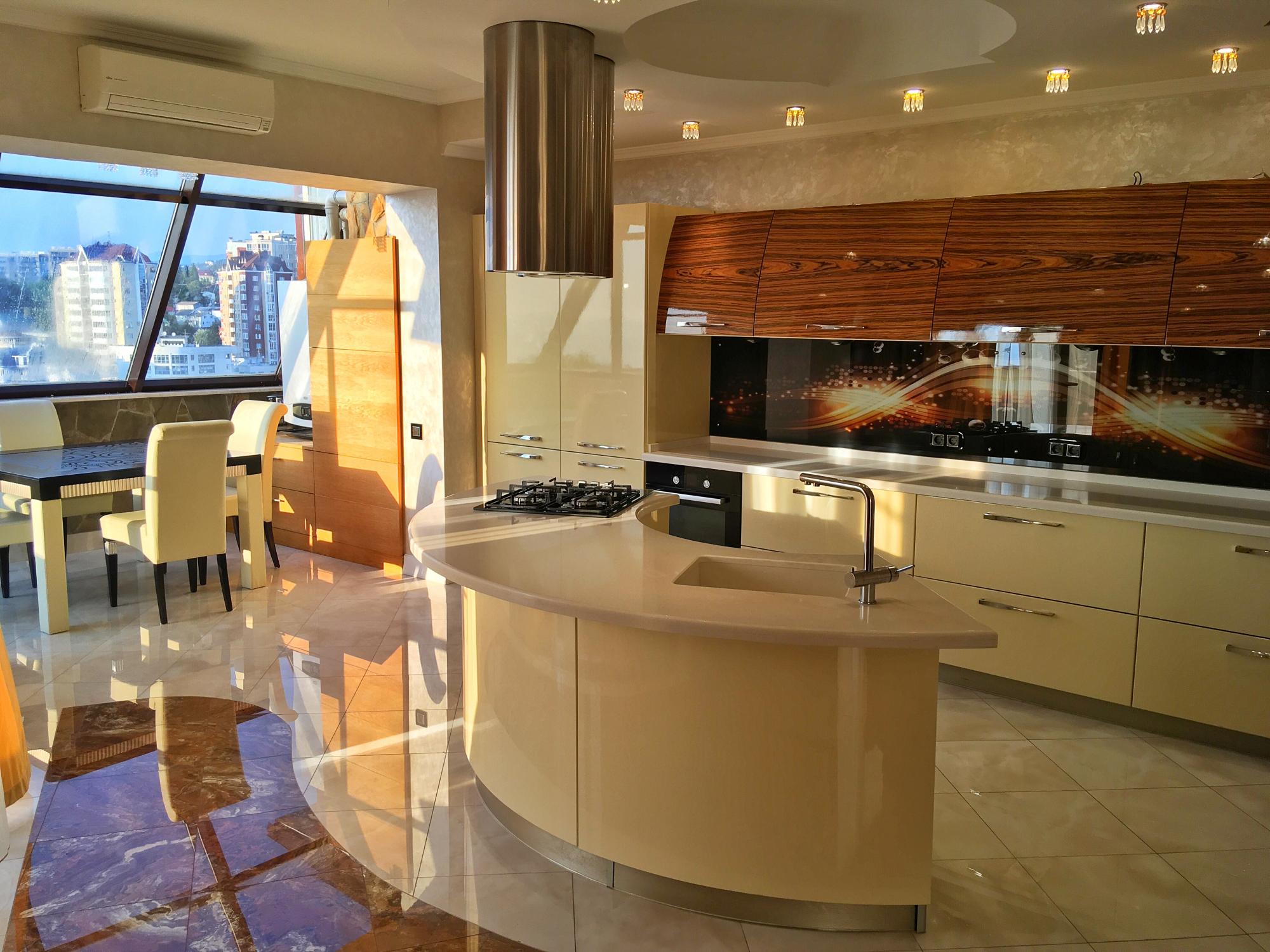 Предлагается к продаже 2-ур. квартира площадью 180 кв.м. с высококачественным ремонтом, мебелью и бытовой техникой в доме бизнес-класса. Гостиная, кухня, 2 спальни с гардеробом, кабинет, 3 санузла, огромная терраса с панорамным видом на море. Квартира оборудована современной системой охраны. Придомовая территория огорожена, автоматические ворота, видеонаблюдение, охраняемый паркинг, озеленение. На территории комплекса расположены детская и спортивная площадка. Транспортная доступность. Недалеко от дома школа, д/сад. 5-10 минут пешком до моря. Рядом находятся санатории "Заполярье", "Русь", "Салют", "Беларусь" и гос. дача "Бочаров ручей".