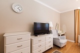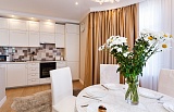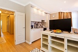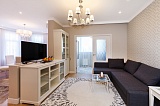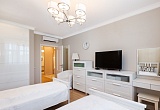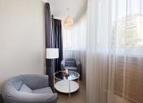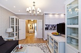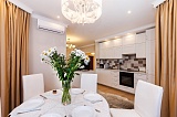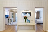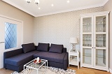 В интерьере квартиры преобладает современная классика и мотивы средиземноморского стиля. За счет обилия света и изящной цветовой гаммы, квартира визуально кажется еще более просторной, чем самом деле! Мебель, которая, к слову, является просто неотъемлемой частью самого интерьера, остается в квартире.