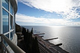 Если Вы ищите квартиру в жилом комплексе именно такого плана, то у агентства «Винсент Недвижимость» есть для Вас потрясающий вариант: роскошная «трешка», расположенная на 7-м этаже «Пальмиры». Главные достоинства этой квартиры – внушительная площадь, равная 153 квадратным метрам, а также наличие качественного евроремонта. Стены жилых комнат (спальни и зал) оклеены фактурными обоями с едва заметным цветочным орнаментом, полы – паркетная доска, потолки - гипсокартон. Санузел отделан итальянской кафельной плиткой. Окна и балкон квартиры выходят на морскую сторону, а благодаря огромным панорамным окнам, ее жители смогут любоваться морским пейзажем из любой части комнат.