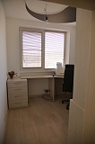 Квартира расположена на шестом этаже, а площадь ее равна 79 квадратным метрам. Интерьер оформлен в светлой цветовой гамме, с двумя яркими комнатами, и великолепным видом из окна... В квартире большой коридор из которого мы имеем доступ в кладовую, санузел, гостиную, комнату и кабинет...