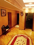 Квартира 98+12 м2, состоящая из; 3-х комнат (зал, спальня для детей, спальня для взрослых) кухни столовой. огромнейшего холла, закрытой лоджии 12м2 с двумя встроенными шкаф-купе, раздельного сан-узла. Ремонт квартиры исполнен в стиле Классик из дорогостоящих материалов, практически вся мебель включая встроенную кухню изготовлена из дерева Бук, весь интерьер сделан не просто и со вкусом, можно много описывать но лучше всего один раз увидеть. Придомовая без проблемная парковка.