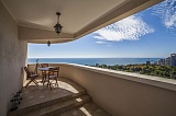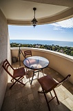 Квартира очень большая,ее площадь составляет 120 квадратных метров.В квартире расположены просторная кухня-гостиная,две уютные спальни,два санузла.Также в квартире имеется выход на собственную широкую террасу,с которой открывается великолепный вид на морскую панораму.