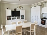 Площадь квартиры, представленной Вам, равна 110м2. Распланирована следующим образом: две просторных спальни – хозяйская и детская, большая кухня-гостиная, раздельный санузел. Из окон квартиры открывается просто нереально красивый вид на морскую панораму. Важно, что квартира полностью готова к Вашему проживанию – в ней есть вся необходимая мебель, современные модели бытовой техники. Перед продажей был произведен новый евроремонт. В основе стиля интерьера лежит извечная классика, которая всегда будет поражать своим изяществом и элегантностью!