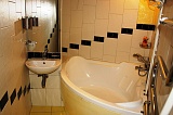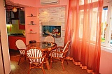 Квартира площадью 76 м2 расположена на невысоком этаже в монолитном доме 2002 года постройки. В квартире большая гостиная, плавно вытекающая из кухни и столовой. Одна из сторон зала полностью в зеркалах, что, несомненно, придаёт квартире объёмность. Помимо этих помещений в квартире 2 спальни, одна из которых со своей душевой. Санузел раздельный.