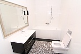 3-комнатная квартира с хорошим ремонтом в доме бизнес-класса. В квартире две комнаты, просторная кухня-гостиная,два санузла,большой балкон с видом на море. Квартира полностью мебелирована и укомплектована техникой. Квартира продается со всей находящейся в ней мебелью и техникой,что конечно же сводит к минимуму все трудности по обустройству своего нового жилья и позволяет вселиться в него сразу же после покупки.Своя придомовая закрытая охраняемая территория, паркинг, детская площадка,удобный подъезд.До моря 300 метров.
