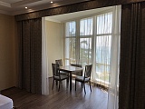 Один из самых главных плюсов – потрясающий прямой вид на морскую акваторию, который открывается из больших витражных окон.