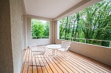 Планировка данного апартамента включает в себя просторную ванную комнату, широкий коридор плавно переходящий в студию кухню-гостиную. Уютная спальная комната спланирована с гардеробной. Одной из главных изюминок всех апартаментов в «Русской Ривьере» являются большие террасы. Здесь, расположившись в удобных кресла, Вы можете в тишине наслаждаться великолепием красоты дендропарка Зеленой рощи, слушать пение птиц, а через широкие распашные панорамные окна Ваш дом будет наполнен горным воздухом, насыщенный морской солью, ароматами хвои и экзотических цветов.