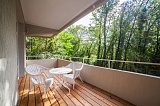 Данный апартамент состоит из просторной кухни-гостиной с выходом на большую террасу, две уютные спальные комнаты с гардеробными, ванная комната площадью 9 кв.м. Одной из главных изюминок всех апартаментов в «Русской Ривьере» являются большие террасы. Здесь, расположившись в удобных кресла, Вы можете в тишине наслаждаться великолепием красоты дендропарка Зеленой рощи, слушать пение птиц, а через широкие распашные панорамные окна Ваш дом будет наполнен горным воздухом, насыщенный морской солью, ароматами хвои и экзотических цветов.
