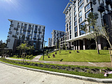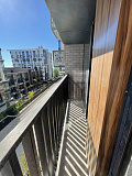 За счет больших панорамных окон, апартаменты всегда наполнены естественным светом. Есть открытый балкон. Очень хороший вид на территорию апартаментного комплекса, зелень.