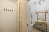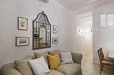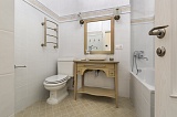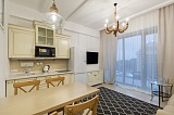 Интерьер квартиры выдержан в очень сдержанном и утончённом классическом стиле, приобретающем особую оригинальность за счет отчетливо прослеживающегося контраста с элементами модерна и ретро-тематики. Преобладание светлой цветовой палитры, изящная мебель в минималистичном дизайне, элегантный эко-декор, уютный домашний текстиль – все это придает квартиры очень оригинальный и неповторимый вид. Комнаты укомплектованы очень дорогой мебелью от фабрик, которые у всех на слуху: «Asnaghi Interiors», «Andrea Fanfani», «Lineatre», «Ipe Cavalli» и т.д. Установлена бытовая техника и мощное климатическое оборудование, которое позволяет поддерживать оптимальный микроклимат внутри квартиры, невзирая на погоду и температуру, за окнами.