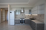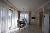 В квартире просторная гостиная, кухня с теплым полом, две просторные спальни, два раздельных сан. узла и просторный балкон-терраса с панорамой синего моря.