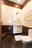 Площадь предлагаемой к продаже квартиры составляет 155 квадратных метров. Спальные комнаты непроходные. Два санузла, один из которых оборудован ванной-джакузи. Просторная и светлая кухня совмещена с обеденной комнатой, гостиная отдельно. Интерьер данной «трешки» выполнен в достаточно современном стиле, сочетающим в себе благородные элементы извечной классики, так и хай-тек стиля. Благодаря тому, что квартира расположена на 16-ом этаже из ее окон открывается потрясающий вид на Черное море и на лесопарковую зону города!