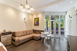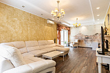 Общая площадь квартиры – 316 квадратных метров. Невзирая на факт такого внушительного метража, пространство в ней распланировано максимально гармонично и функционально. Повод для особой гордости и восхищения – открытая терраса с прекрасным видом на южный город, море и зелень.