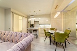 Предлагаемая квартира с дорогим дизайнерским ремонтом, выполнена в светлых нежный тонах, очень уютная и просторная. Две шикарные видовые спальные комнаты, гостиная с кухней/столовой зоной. Просторный коридор с гардеробной. Просторная ванная комната и гостевой санузел.