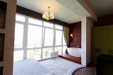 Еще одна «изюминка» квартиры – большие витражные окна, которые открывают взору жителей невероятно красивый вид на горы, зелень и, частично, на море!