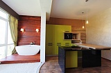 Продается уютная однокомнатная квартира с невероятно красивым авторским ремонтом, выполненным в точном соответствии с дизайн-проектом. Основа оформления внутреннего пространства – стильное и яркое сочетание современного классицизма с неоклассикой и модерном. Очень оригинальная планировка пространства и удобное зонирование делают квартиру чудесным вариантом для семейных пар. Открывая дверь, вы попадаете в небольшую прихожую комнату, налево – санузел, направо – гардеробная. Сделав еще пару шагов вперед Вы попадаете в просторную кухонно-гостиную часть, зонирование в которой выполнено при помощи кухонного островка – столешницы барного типа, одновременно выполняющей функцию обеденного стола. Пройдя еще несколько метров, Вы попадаете в спальню со своей собственной ванной! При желании, эту часть квартиры можно отделить ширмой или шторами-blackout, которые сделают эту зону более приватной и позволят Вам отдохнуть, пока остальные Ваши домочадцы еще бодрствуют.
