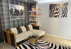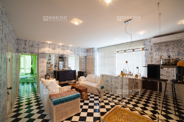 В квартире выполнен дизайнерский ремонт при помощи материалов высокого качества, отличающийся эффектным сочетанием цветов и фактур.