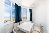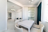 Предлагается к продаже новая дизайнерская современная квартира на высоком этаже в доме Бизнес-класса. Квартира белоснежная, светлая, стильная, ультрамодная и современная, оборудована мебелью и техникой ведущих зарубежных производителей. Квартира поделена на две просторные спальные комнаты с видом на море, огромную гостиную кухню переходящую в панорамную столовую. Так же имеется гардеробная и комфортный санузел совмещенный с шикарной ванной.