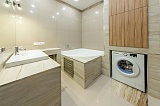 Общая площадь представленных апартаментов – 82, 5 квадратных метра. Высокие потолки – 4,5м. Вкупе с продуманное планировкой, предложение просто идеально подходит для жизни большой семьи. Выделено две спальных комнаты, а гостиная, как и в большинстве новостроек, совмещена вместе с кухней. Главная тема оформления внутреннего пространства – стильный и современный лофт, который покорит Вас своей элегантностью и благородством. Спокойная палитра красок, которой в интерьере отведена главенствующая роль, способствует тому, чтобы Вы максимально абстрагировались от всех своих забот. Отделка выполнена с использованием качественных и дорогих материалов, что только подтверждает престиж предложения. Остается мебель и техника.