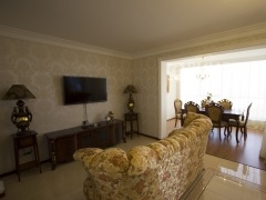 Прямая продажа. Элитная трехкомнатная квартира общей площадью 100 кв. м, расположена на 9 этаже жилого дома бизнес класса. Квартира состоит из просторной кухни-гостиной (студия), двух спальных комнат, 2 с/у и огромной открытой террасы с панорамным видом на море. В квартире выполнен авторский ремонт, установлена встроенная кухня с оборудованием, сантехника. мебель Дом находится в непосредственной близости от морского вокзала, концертного зала "Фестивальный" и 5 мин. ходьбы до пляжа. В квартире установлены: витражные окна, входная металлическая дверь, все коммуникации, домофон, цифровая телефонная связь, выделенная линия Internet, Эфирное и спутниковое телевидение, автономное отопление. Характеристика дома: •высококачественная отделка фасадов и внутренних помещений •площадь территории комплекса 1500 кв. м. •закрытая территория, круглосуточная система охраны и видеонаблюдение •ландшафтные работы и озеленение территории •зоны отдыха •служба эксплуатации комплекса •сейсмоустойчивость 8-10 баллов •индивидуальный проект, витражное остекление - ламинированные 3-х камерные немецкие стеклопакеты с тонированными бельгийским остеклением •холлы - мрамор, керамогранит •бесшумный скоростной лифт - "OTIS" •во дворе бассейн с гейзерами и противотоками, отделка - мозаичная плитка •паркинг •предусматривается дополнительная установка дизельного генератора •коммуникации свет, вода, газ и канализация подводятся к дому централизованно.