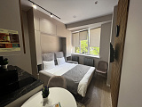 Студия полностью оборудована мебелью и бытовой техникой. Выполненный внутри ремонт отличается высоким качеством исполнения и визуальной эстетикой. В апартаментах действительно приятно находиться. Данный аспект, к слову, только повышает их инвестиционную привлекательность, поскольку подобные объекты пользуются очень большим спросом.