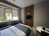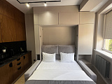 Площадь представленных апартаментов составляет 28 квадратных метров. Пространство распланировано студийным образом, что обеспечивает комфорт во время отдыха. Зона отдыха представлена большой двуспальной кроватью. Есть небольшая кухня.