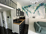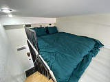 Квартира с ремонтом и мебелью, укомплектована техникой. В ней вам будет приятно проводить время после активных прогулок и путешествий по городу. Квартира достаточно компактная и экономия пространства здесь достигается отсутствием громоздкой мебели. Все очень функционально. Высота потолка 3,5 м, поэтому была реализована антресоль с двуспальным матрасом. Очень удачно использована ниша у окна, в которую встроили большой гардеробный шкаф. Санузел совмещенный с душевой кабинкой.