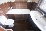 В квартире сделан евроремонт, установлена вся мебель и бытовая техника. В гостиной есть камин, у которого очень уютно посидеть в прохладную ночь и попить чаю. Со второго этажа возможен выход на балкон 40 кв.м., зона барбекю, имеется камин. А с балкона винтовая кованная лестница выведет Вас на крышу, где можно поставить лежаки чтоб позагорать. Автономное отопление (котел). Закрытая придомовая территория, стоянка автомобиля во дворе под навесом.
