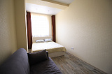 Общая площадь апартамента – 60 м2. Внутреннее пространство поделено на 2 изолированных спальных комнаты, кухню-гостиную, санузел и открытый балкон с потрясающим видом на горы и лесной массив.