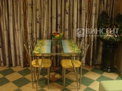 Квартира расположена в жилом, густо населённом районе. Дом после капитального ремонта, располагается вдоль трассы улицы Донской (первая линия). В непосредственной близости находятся школы, детские сады,торговый центр, рынок. Выполнен евроремонт, мебель. Перепланированна из 3-х ком. в 4-х ком.