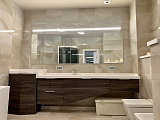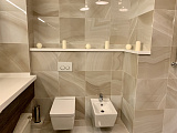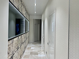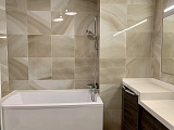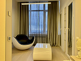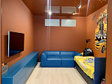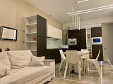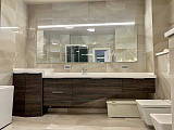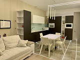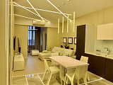 Большим преимуществом является тщательно продуманное сегментирование жилого пространства на функциональные зоны. Расстановка мебели, сантехники, выводы под электронику и бытовую технику – все максимально эргономично. Стильный современный интерьер.