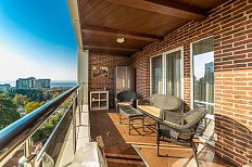 За счет расположения на высоком этаже, из окон открывается очень красивый вид. Хорошо просматривается панорама центра города, морская акватория.