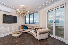 Общая площадь квартиры составляет 110 квадратных метров. Внутри – 2 отдельные спальни, просторная кухня-гостиная, открытый балкон с зоной для отдыха. Все комнаты очень светлые. Отдельный плюс заключается в продуманном зонировании пространства, которое делает проживание здесь еще более удобным.