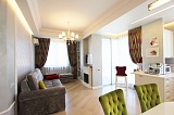 Важно, что квартира полностью готова для жизни! Как Вы можете видеть на фотографиях, внутренняя отделка – современный дорогой ремонт. Мебель и техника остаются в квартире в качестве подарка будущим владельцам! Обратит е Ваше внимание также на то, что элементы мебели и декора подобраны в полном соответствии с интерьером жилища!