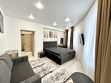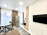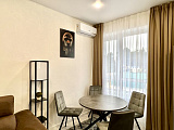 Важный аспект, который нельзя обойти вниманием – удачное расположение. Квартира находится в новом жилом комплексе в самом центре города. При этом сама локация изолирована от суеты даже в разгар курортного сезона. За десять минут можно дойти до Зимнего театра и Центральной набережной Сочи. Прогулку до Морского порта займет около пятнадцати минут, как и до парка «Дендрарий». Рядом – супермаркеты, автобусная остановка, салон красоты, кофейня, стоматологическая клиника. Отдельный плюс – хорошая транспортная доступность и возможность попасть на объездную, минуя самые загруженные городские улицы.