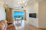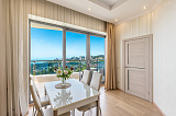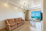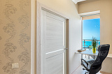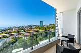 Квартира расположена на высоком этаже и обладает потрясающим панорамным видом на морское побережье и город. Квартира распланирована следующим образом: кухня-гостиная, спальная комната, совмещенный санузел, прихожая-гардеробная, открытая терраса с великолепным видом. Квартира полностью меблирована, обставлена мебелью и техникой, и готова к продаже.