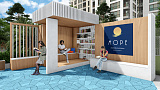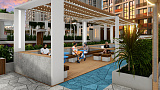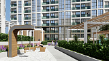 Территория комплекса будет оформлена в соответствии с принципами ландшафтного дизайна с использованием субтропических растений, включая вечнозеленые. Это обеспечит жильцам возможность наслаждаться зеленью и красотой круглый год. На территории будут расположены уютные зоны отдыха, современные детские площадки и спортивные комплексы.