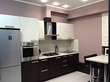 В квартире выполнен евроремонт, ни кто не проживал, оснащена мебелью и всей необходимой техникой. В квартире зал с кухней совмещенные, две спальные комнаты с панорамным остеклением и замечательным видом на море.