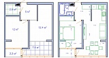 Площадь – 43 кв.м. Выделена изолированная спальная комната, а кухня соединена вместе с зоной гостиной. Санузел совмещенный. Важным преимуществом расположения на первом этаже является собственный выход во внутренний дворик, где можно оборудовать зону для барбекю.