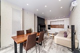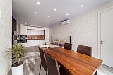 Внутренняя отделка – новый ремонт, отличающийся стильным дизайном и полной готовностью для жизни. Установленная мебель отлично вписывается в общую стилистику, а также отличается своей функциональностью. Есть вся бытовая техника, сантехническое и климатическое оборудование.