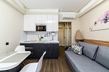Площадь апартаментов – 23 м2. Пространство распланировано студийным образом. Большое внимание уделено вопросу зонирование, поэтому проживание здесь абсолютно точно будет комфортным! Кроме того, к перечню важных плюсов данного предложения можно отнести следующие аспекты: