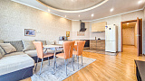 В современном жилом комплексе бизнес-класса «Сияние Сочи» на улице Виноградная предлагается просторная квартира, оформленная в современном стиле. Она включает в себя две отдельные спальни, гардероб, совмещенный санузел и просторную кухню, объединенную с гостиной.