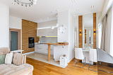 Огромный плюс – это наличие панорамного остекления, благодаря которому квартира становится очень светлой.