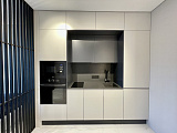 Просмотрев фотографии этой квартиры, вы можете отметить для себя факт эстетичного ремонта, выполненного внутри. Здесь установлена вся необходимая для жизни мебель и техника – кухонный гарнитур, двуспальная кровать, системы для хранения вещей.