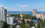 Продается квартира-студия в микро-районе Новый Сочи. Сделан дизайнерский ремонт. Совмещенный санузел, отдельная гардеробная. Отличные видовые качества: круговой вид на морскую гладь и частично на горы. Так же живописности району придает очень красивый Храм. До пляжа 700 метров. Благоустроенная территория  с 5ти уровневым паркингом, детскими площадками и баскетбольной площадкой. Рядом с комплексом  магазин 24 часа, салон красоты, автобусная остановка. В данном комплексе есть квартиры разных площадей с отделкой и без.