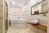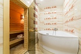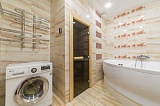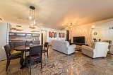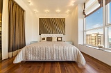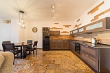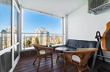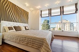 Квартира, площадью ровно 100 квадратных метров, грамотно распланирована в две спальные комнаты, из панорамных окон открывается замечательный вид на море и центр города. Изюминкой квартиры является очень просторная кухня-гостиная и сауна, расcположена в одном из санузлов.