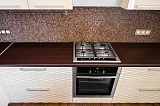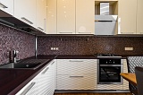 Общая площадь предложения составляет 80 м2. Внутреннее пространство гармонично поделено на 2 отдельных спальных комнаты и гостиную, объединенную с зоной кухни. Зонирование продумано в деталях, как и стильный современный ремонт. В основе интерьера – элегантная классическая тематика и благородная палитра красок: от светло-бежевого до кофейного. Установленная мебель гармонирует с общей концепцией оформления.