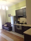 Продается однокомнатная квартира в восьмиэтажном жилом доме бизнес-класса в центре Адлера. Благодаря панорамному остеклению квартира очень светлая. Расположена на первом высоком этаже, считается, как второй. Полностью мебилерована, все готово для заселения. Комната одна, но на кухне также есть диван, который добавляет спальное место. По периметру теплые полы. Квартира оснащена всей необходимой техникой.